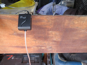 そこでエアーポンプをおとり缶に設置せず、空中に吊り下げることで音を小さくすることにしました。